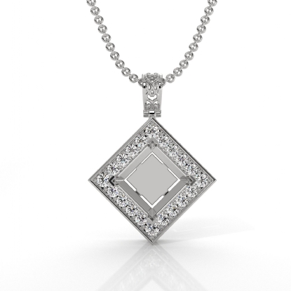 This round pave set diamond solitaire pendant is made for a princess cut center. Crafted in Platinum 950, it includes a halo of sparkling accents for timeless brilliance. Perfect for gifting or adding a luxurious touch to your collection. Includes a matching rolo link chain for a polished, elegant finish.