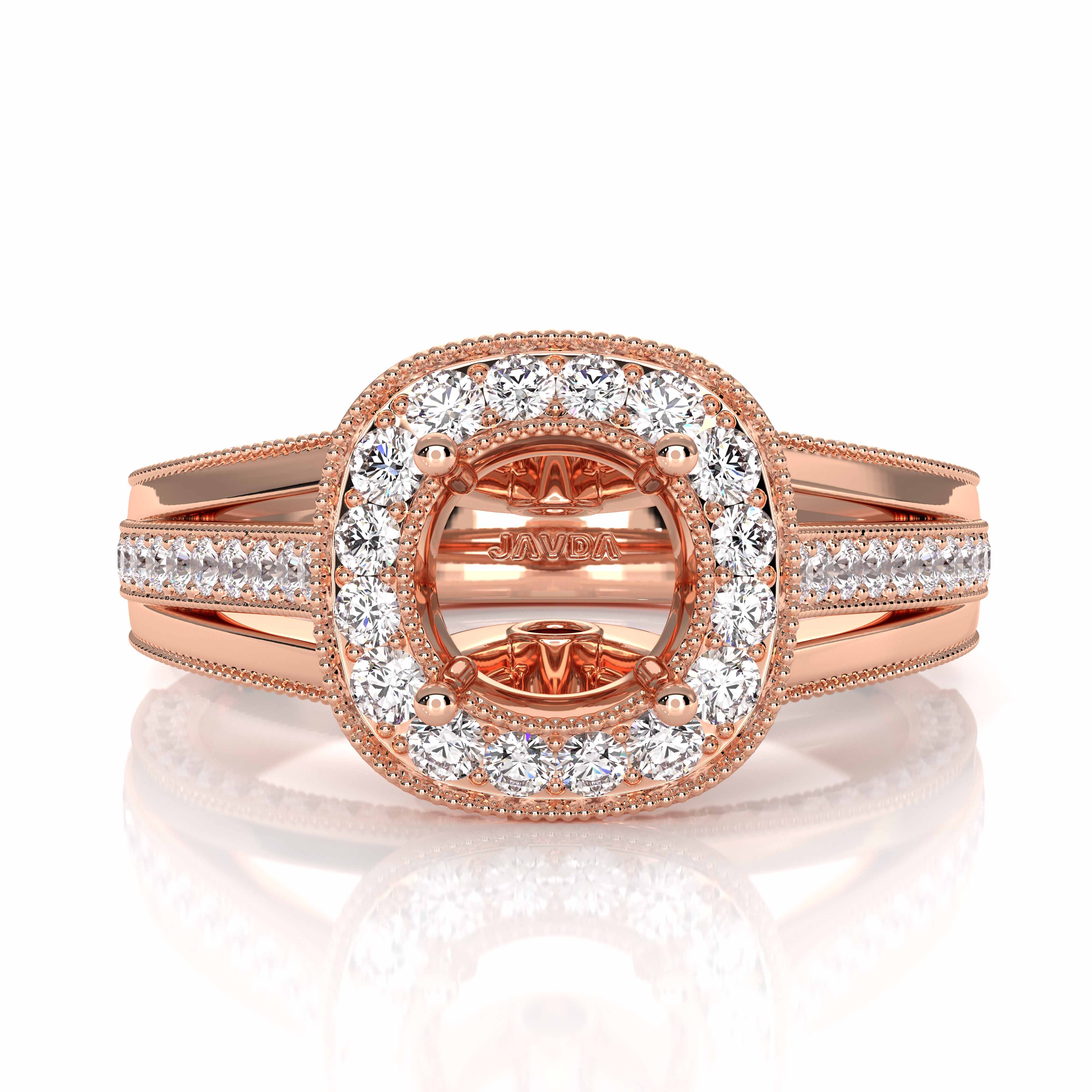 Halo Pre-Set Diamond Engagement Round SemiMount Millgrain Ring 14k Rose Gold (0.9Ct. tw.)