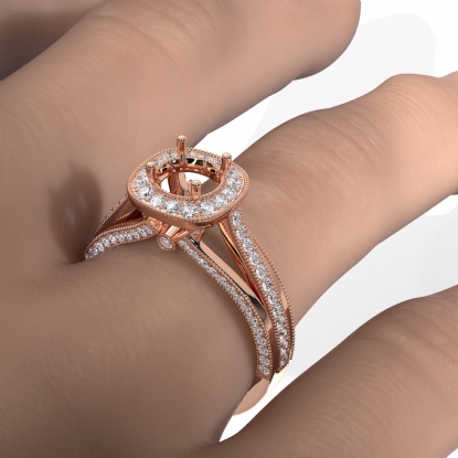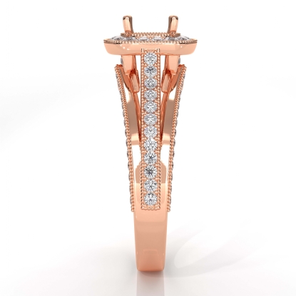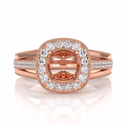 Halo Pre-Set Diamond Engagement Round SemiMount Millgrain Ring 18k Rose Gold (0.9Ct. tw.)
