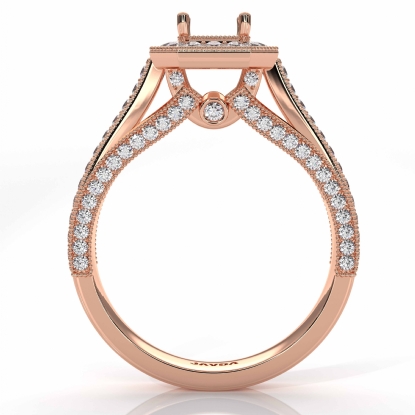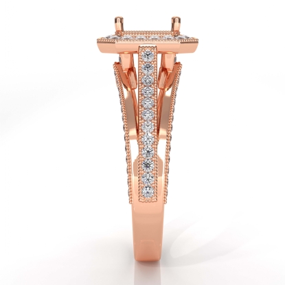 Side 1.40 ctw. Round Diamond Round Diamond Women Engagement & Anniversary Solid Millgrain Ring made in 14k Rose Gold. Diamonds are set in Halo Pave for Emerald Cut in a Semi Mount. (1.4Ct. tw.)
