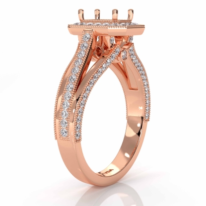 Halo Pave Diamond Engagement Emerald Semi Mount Millgrain Ring 14k Rose Gold (1.4Ct. tw.)