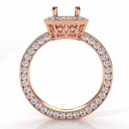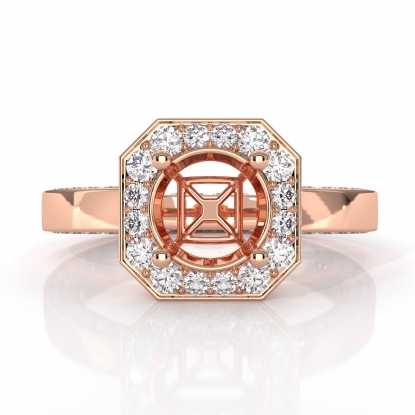Pave Setting Diamond Engagement Ring 14k Rose Gold Rount Cut Semi Mount (1.37Ct. tw.)