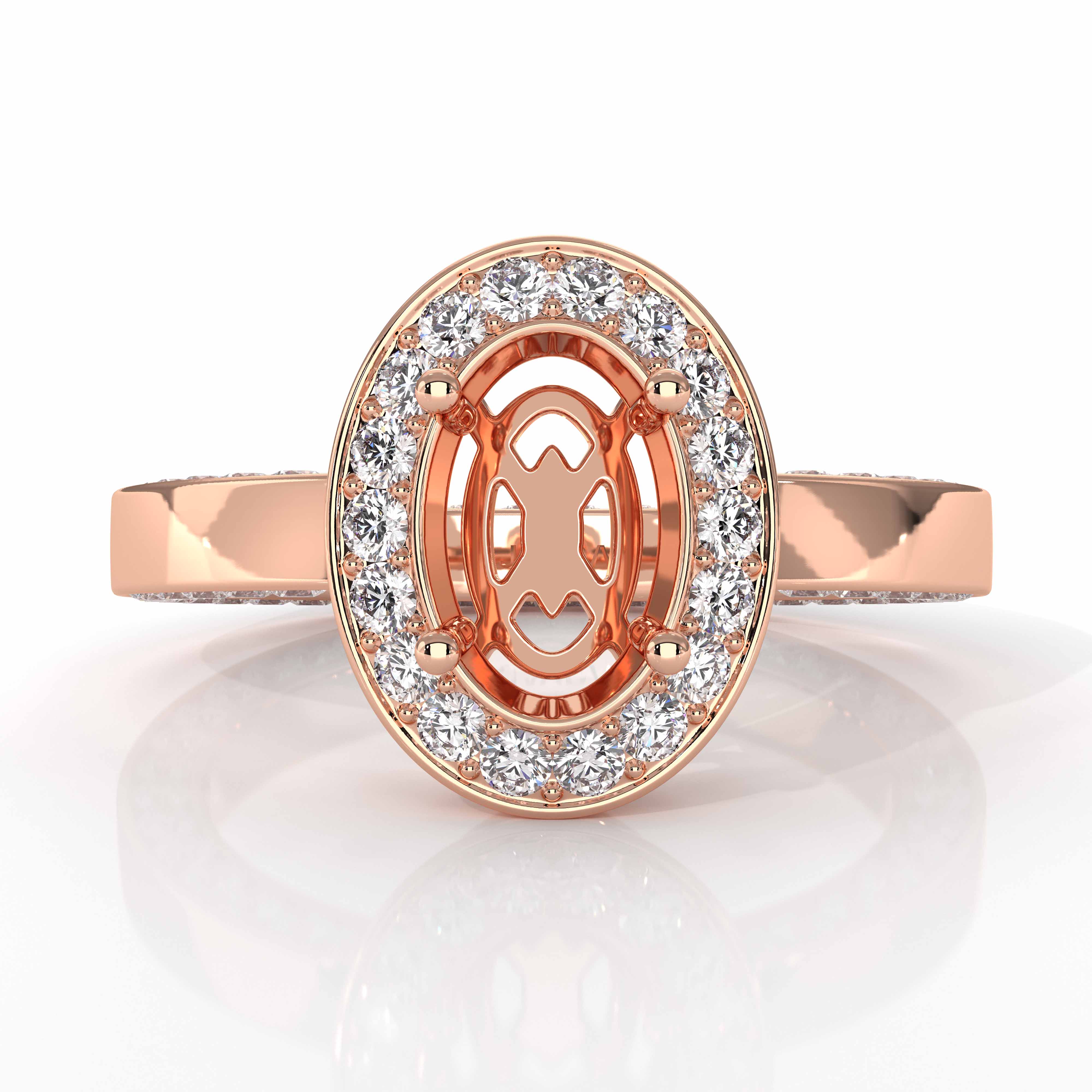 Diamond Engagement Ring Pave Setting Oval Semi Mount 18k Rose Gold (1.45Ct. tw.)