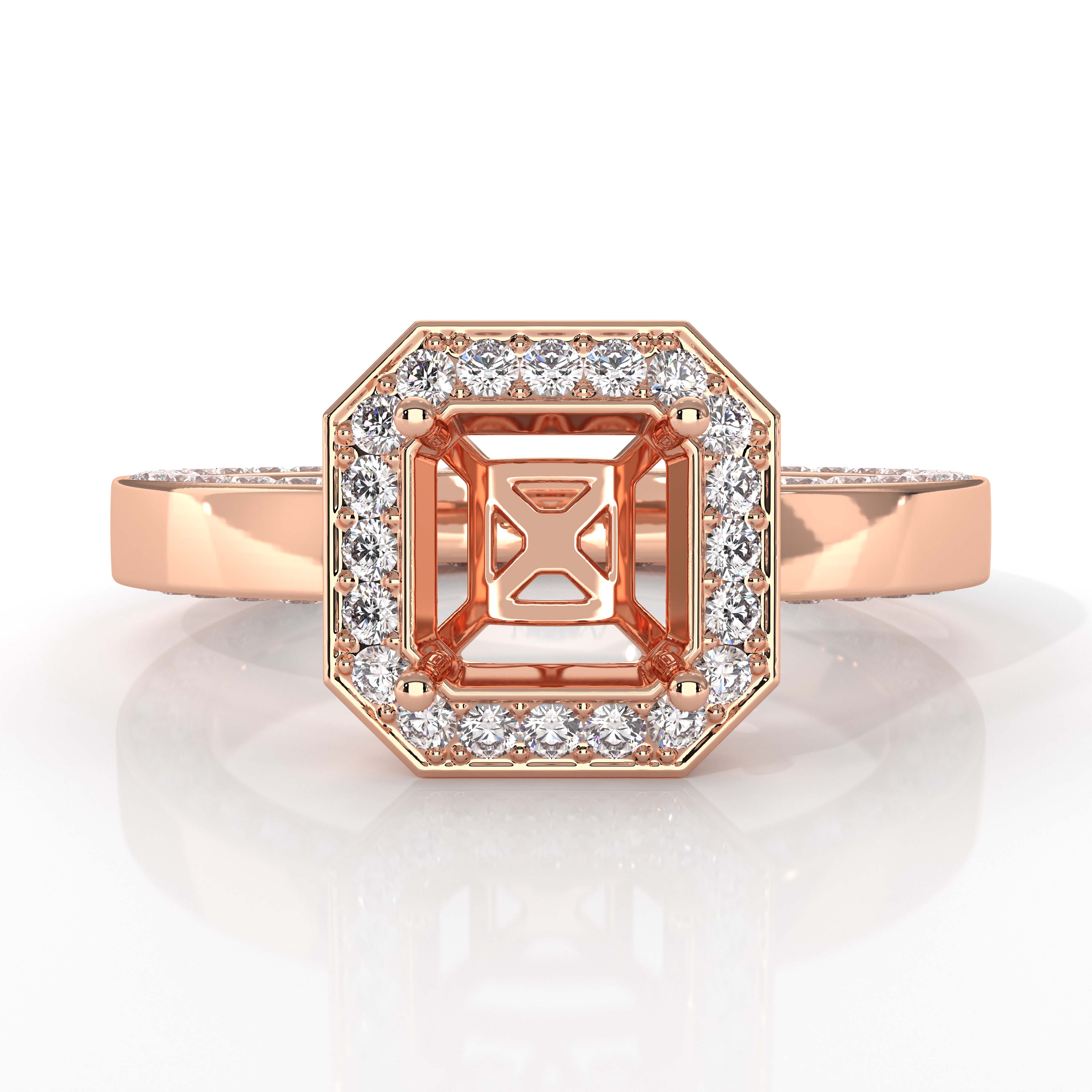 Diamond Engagement Pave Ring Setting Asscher Semi Mount 18k Rose Gold (1.42Ct. tw.)