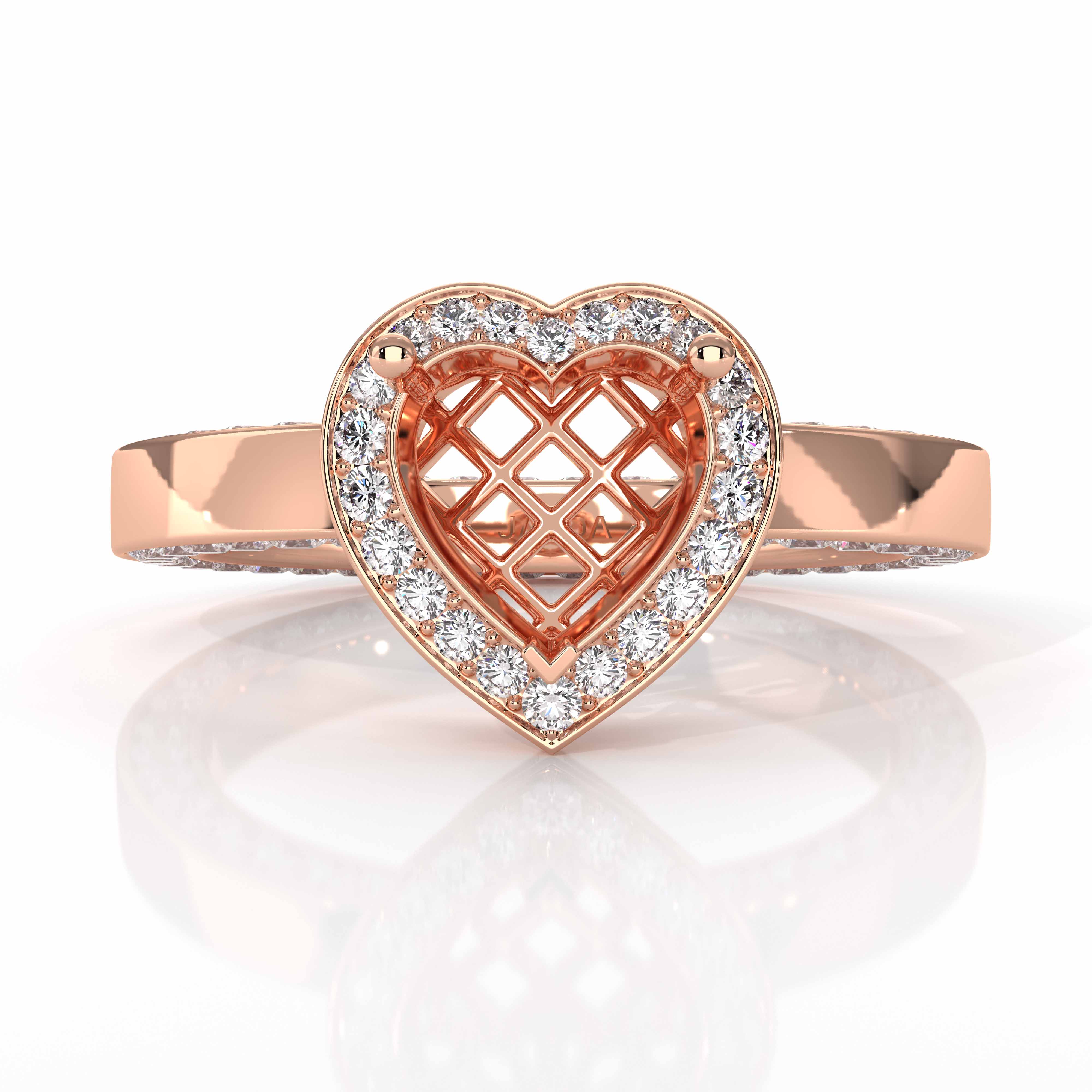 Heart Cut Diamond Engagement Pave Ring Setting 18k Rose Gold Semi Mount (1.35Ct. tw.)