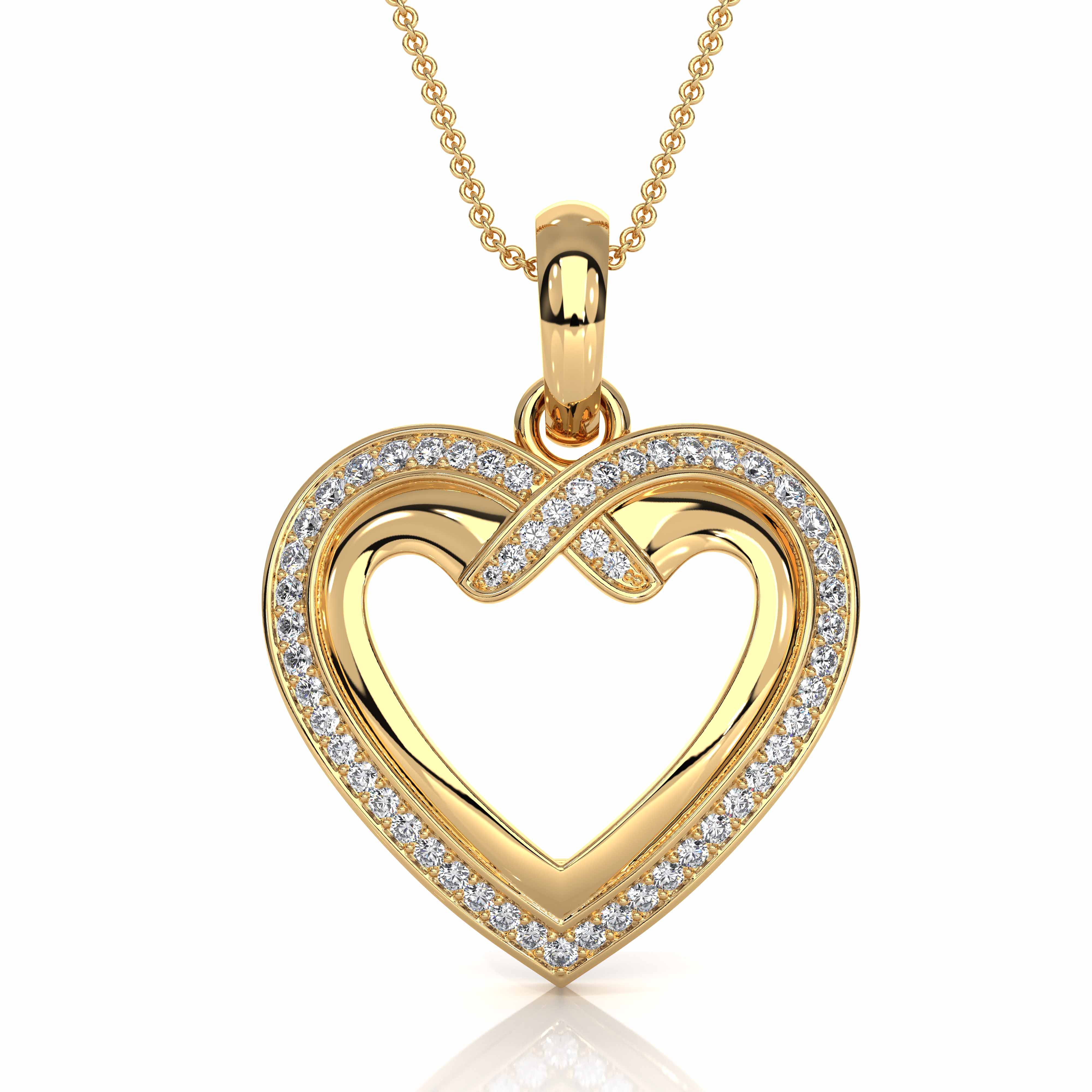 This elegant heart-shaped pendant is crafted in luminous 14k Gold Yellow and adorned with 53 sparkling round lab grown diamonds totaling weight. The layered open-heart design with a diamond-accented outline creates a romantic yet modern look. Weighing approximately 2.62 grams, this pendant offers brilliant shine and refined craftsmanship perfect for everyday wear or as a meaningful gift for anniversaries, Valentines Day, or special moments. (0.2Ct. tw.)