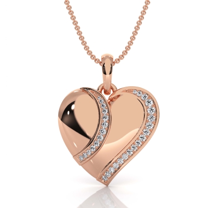 14k Rose Gold Lab Grown Diamond Heart Pendant, Sleek Curved Design (0.11Ct. tw.)