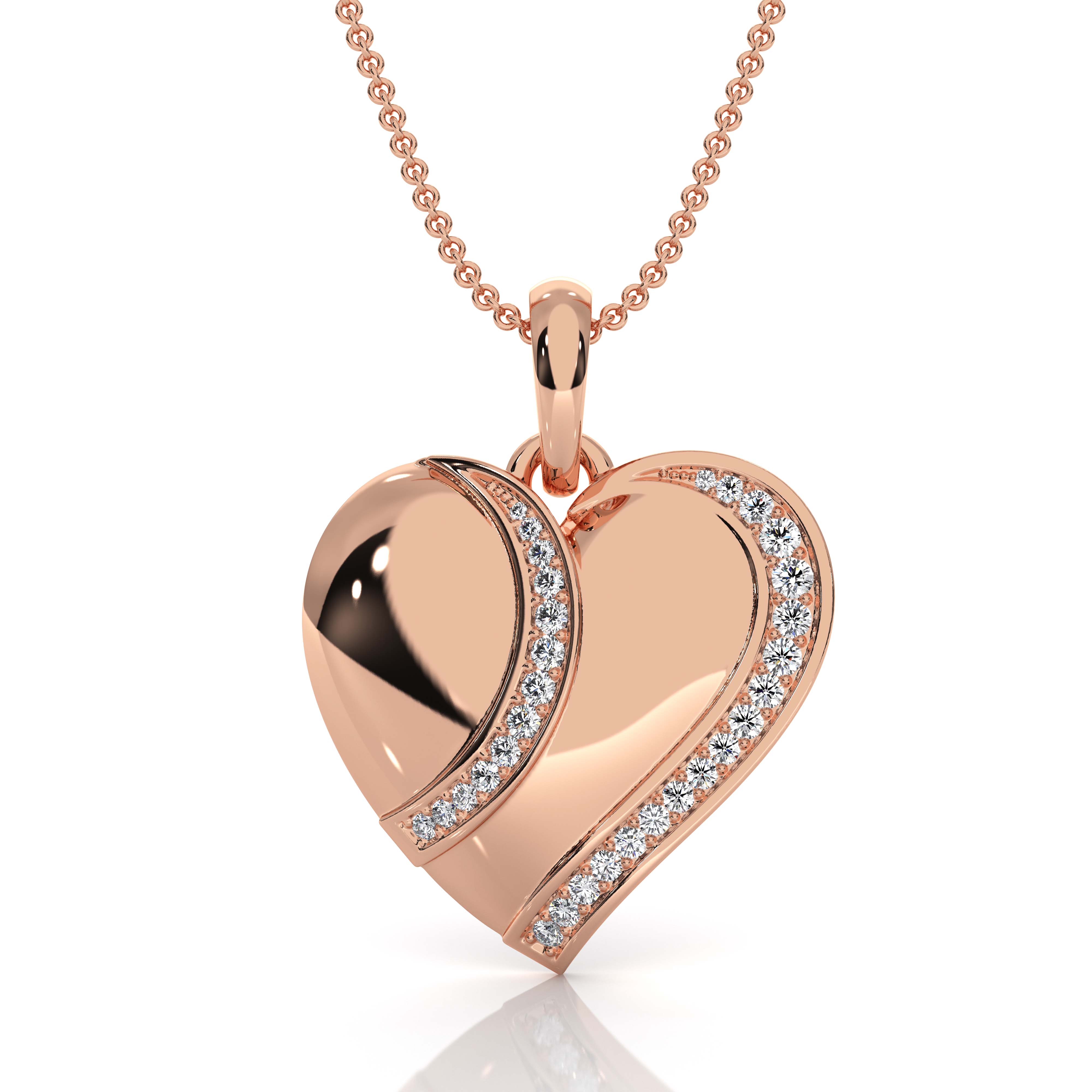 18k Rose Gold Lab Grown Diamond Heart Pendant, Sleek Curved Design (0.11Ct. tw.)