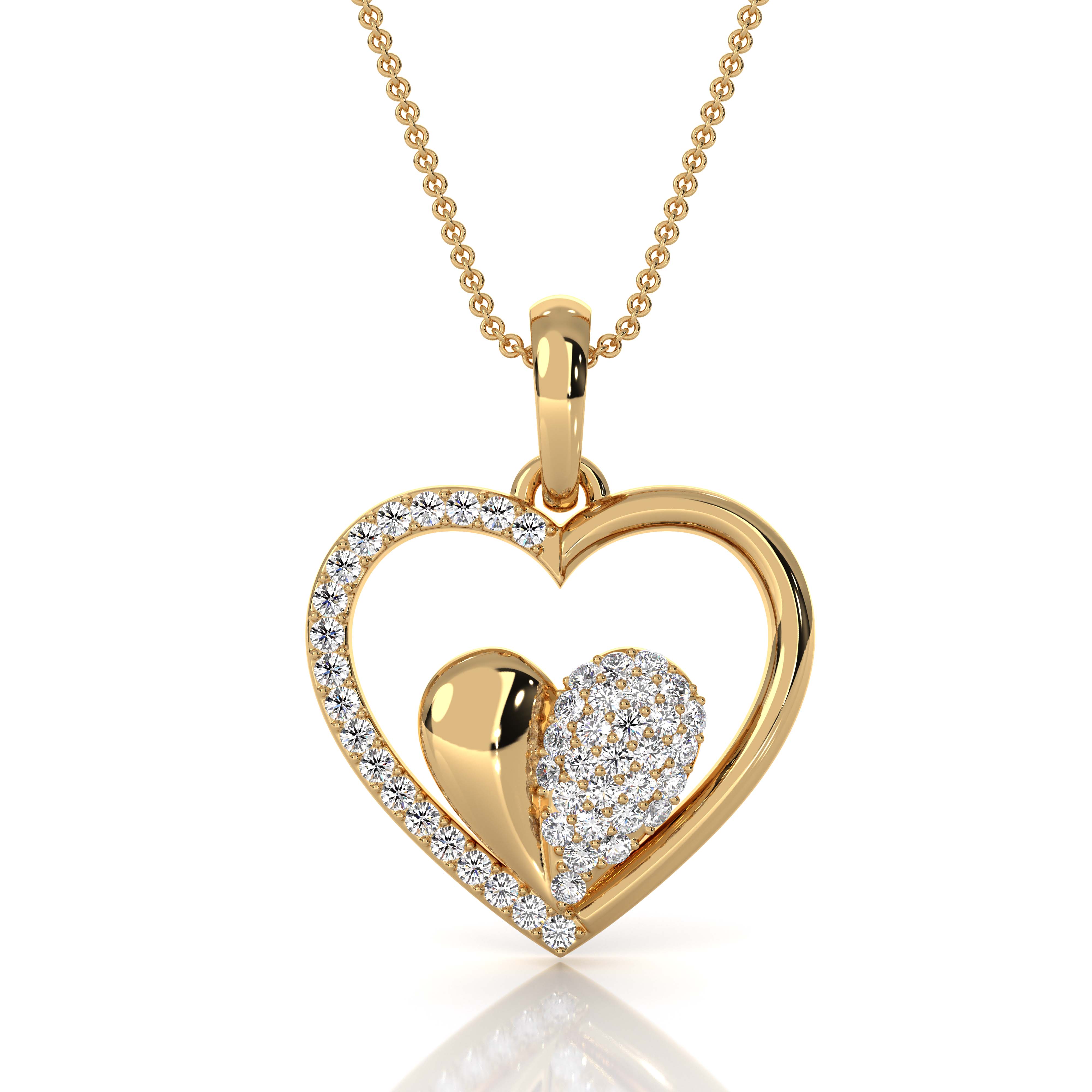 14k Gold Lab Grown Diamond Heart Pendant Necklace Romantic Design (0.18Ct. tw.)