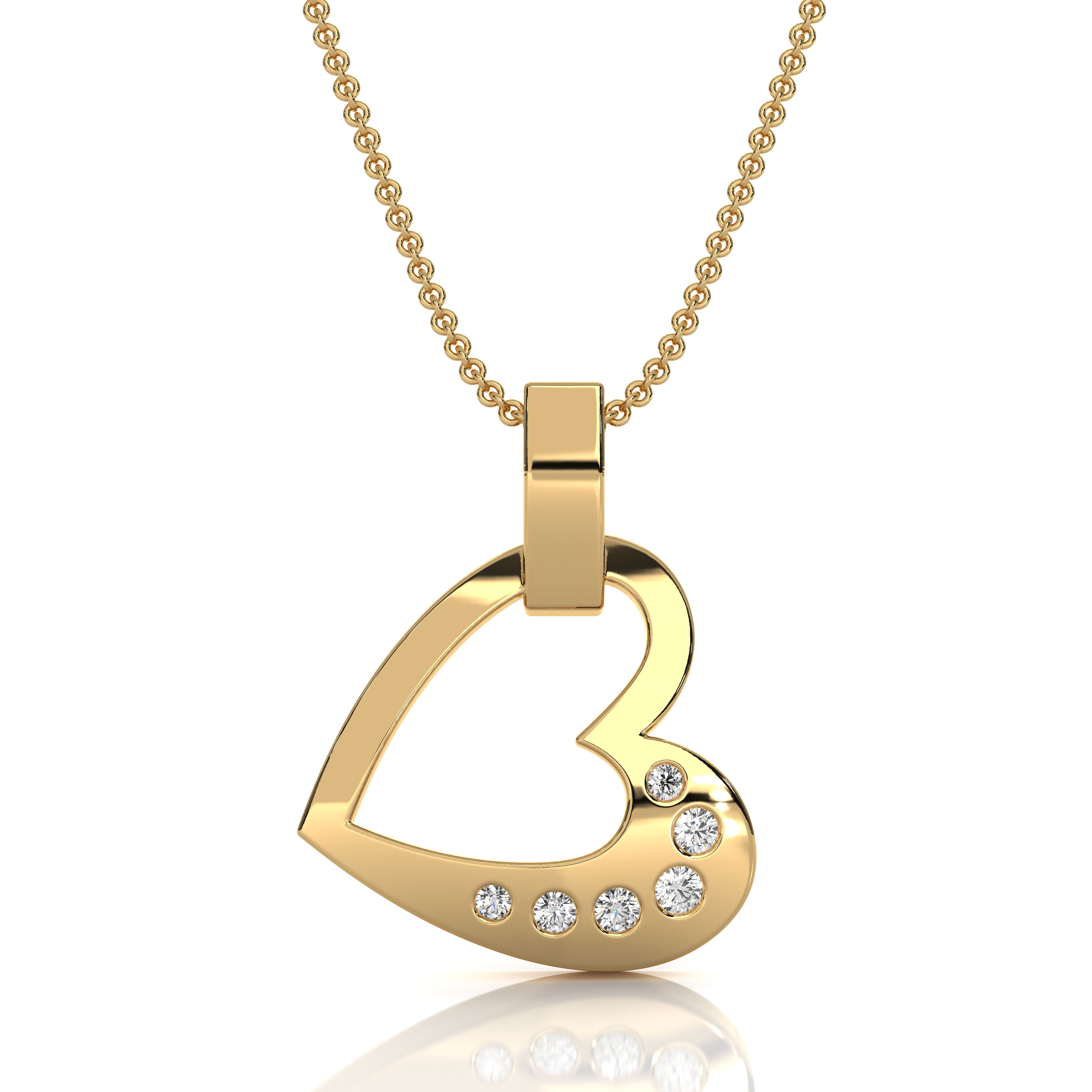 Modern Open Heart Pendant Lab Grown Diamond 14k Gold Necklace (0.05Ct. tw.)