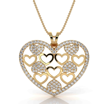 14k Gold Lab Grown Diamond Heart Pendant Multi Heart Pave Set (0.61Ct. tw.)