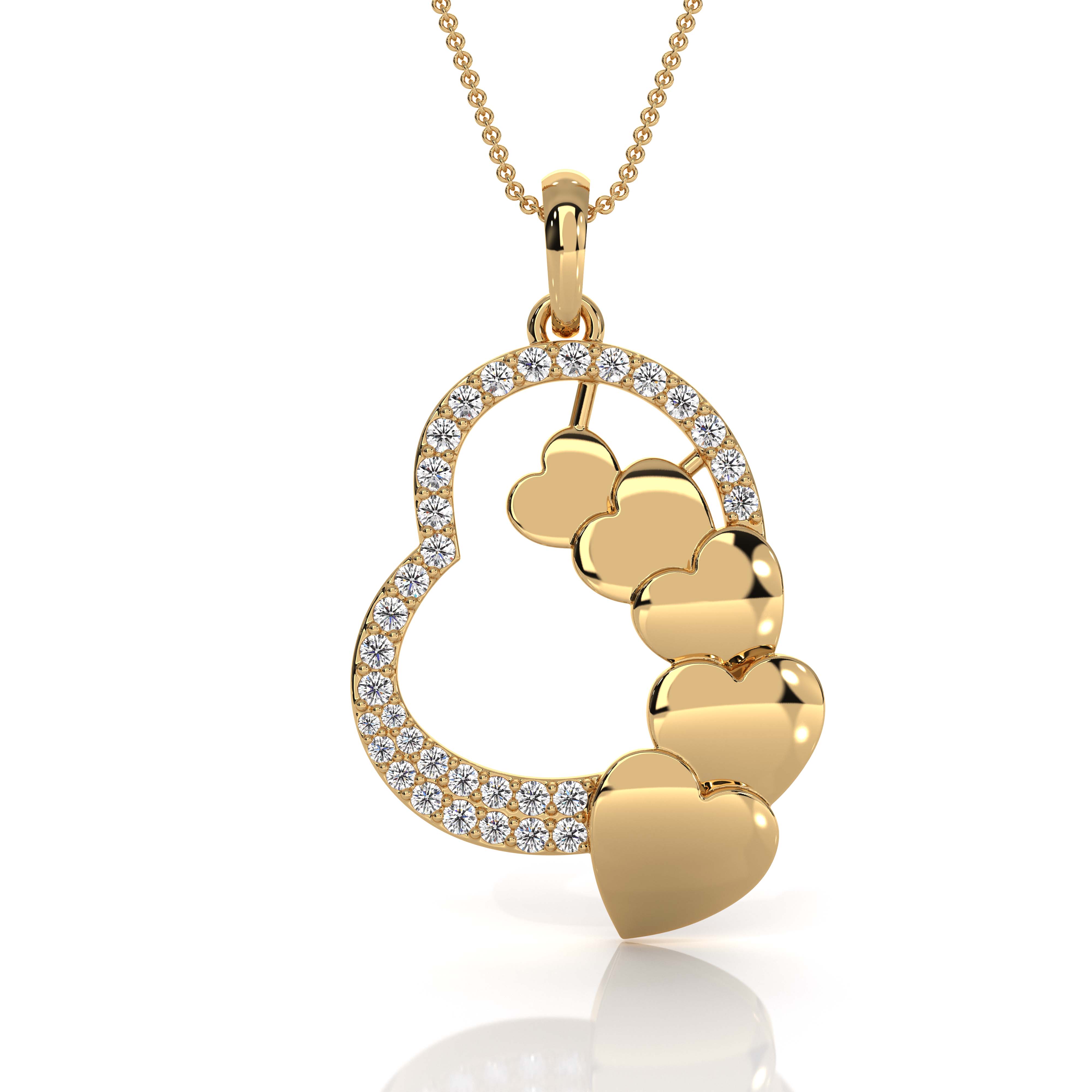 Solid 14k Gold Lab Grown Diamond Heart Pendant Multi Heart Pave (0.3Ct. tw.)