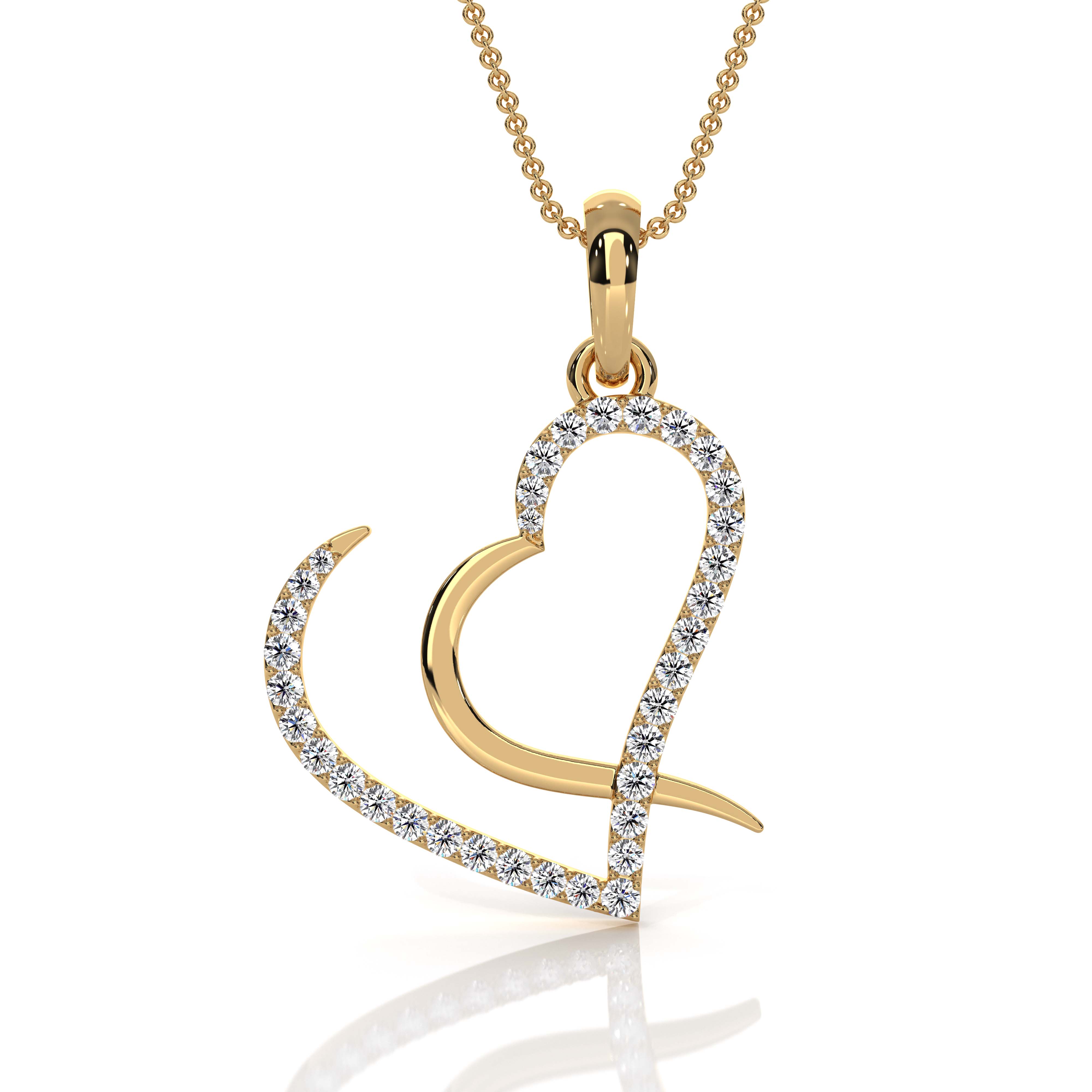 This elegant heart pendant is crafted in solid 14k Gold Yellow and features a modern open-heart design accented with sparkling pave-set lab grown diamonds. The pendant showcases a total of 31 round brilliant diamonds with a combined total weight of approximately , delivering beautiful brilliance and eye-catching shine. With a polished gold finish, the flowing heart silhouette adds a romantic yet contemporary touch. The pendant weighs approximately 1.75 grams, offering a lightweight and comfortable feel for everyday wear or special occasions. (0.24Ct. tw.)