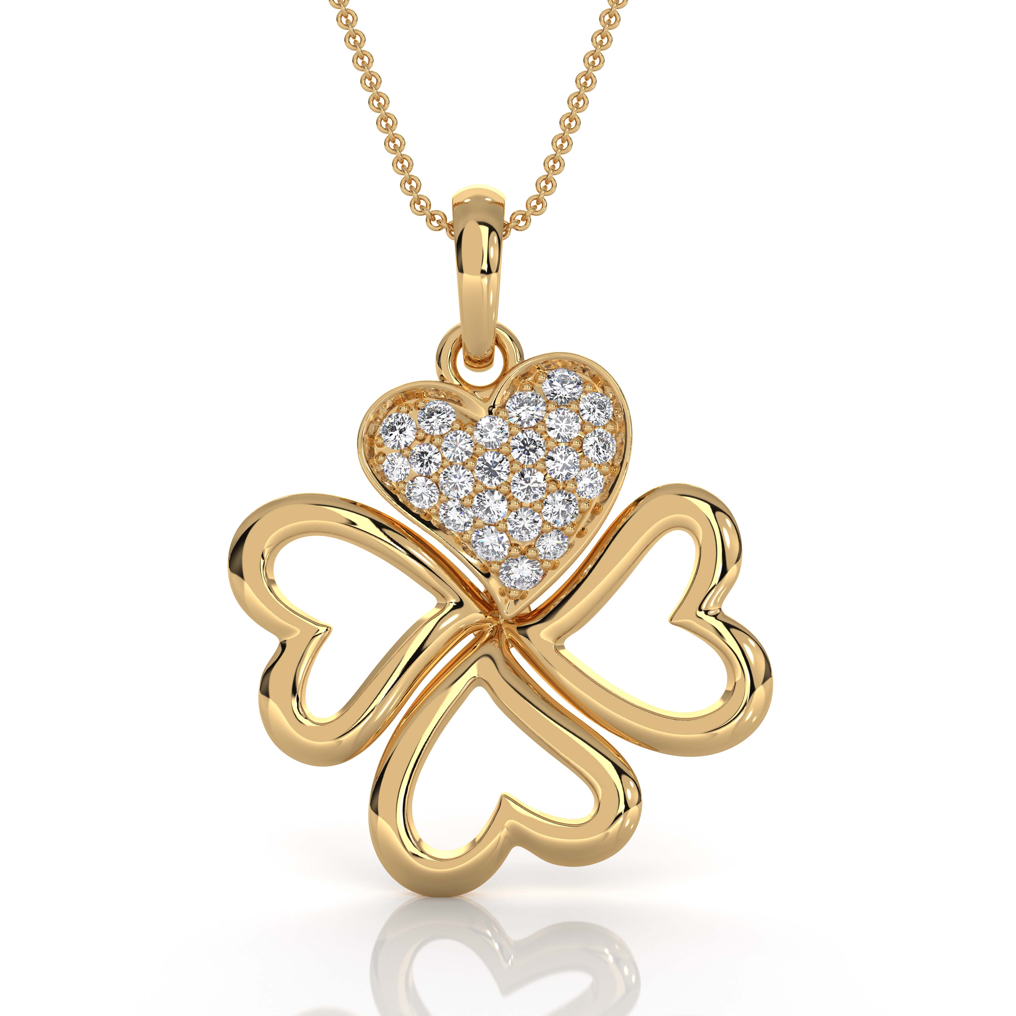 14k Gold Lab Grown Diamond Heart Clover Pendant Necklace Pave Set (0.22Ct. tw.)
