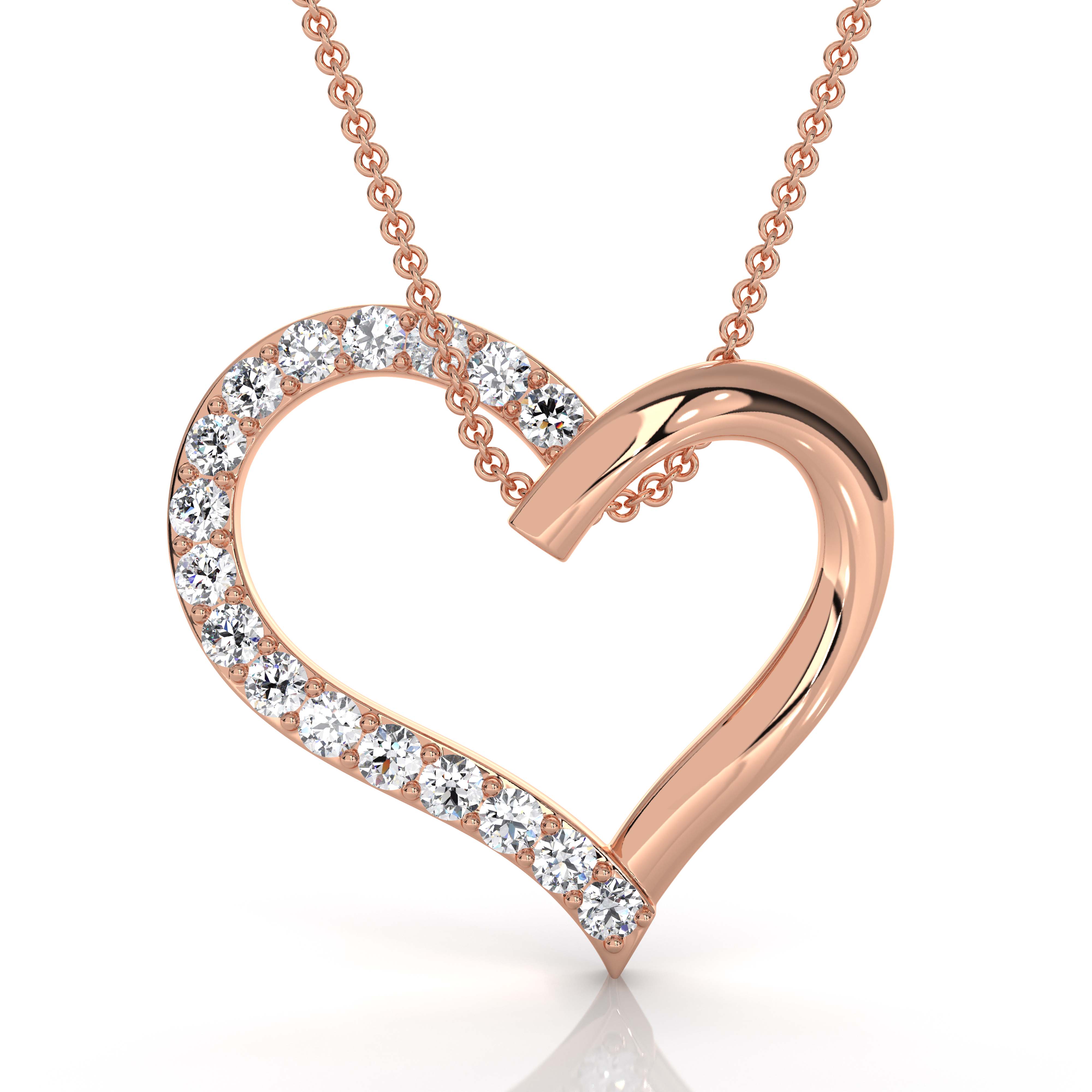 Lab Grown Diamond Open Heart Pendant 18k Rose Gold Valentine Jewelry (0.17Ct. tw.)