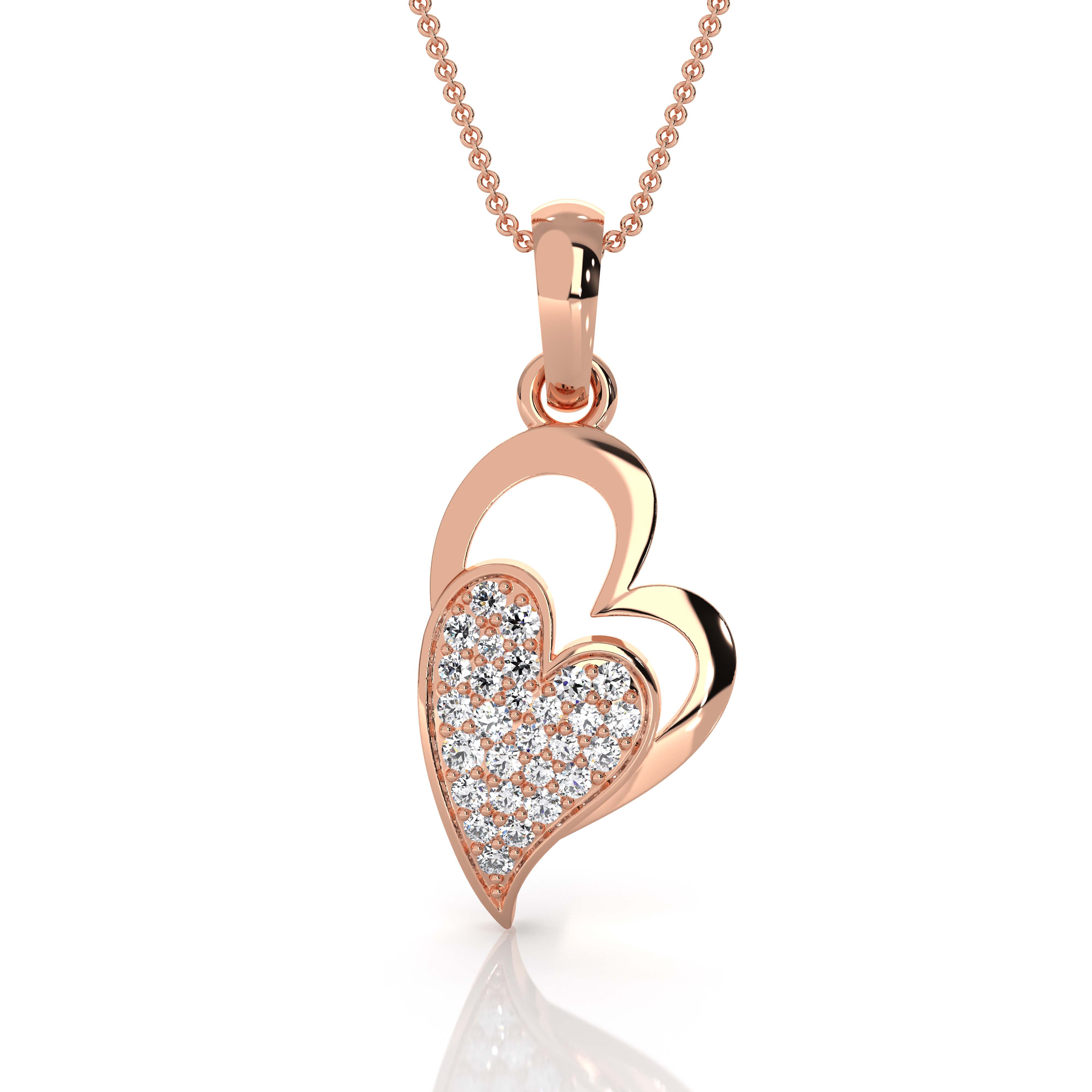 Lab Grown Diamond Heart Pave Pendant 18k Rose Gold Love Charm Necklace (0.16Ct. tw.)