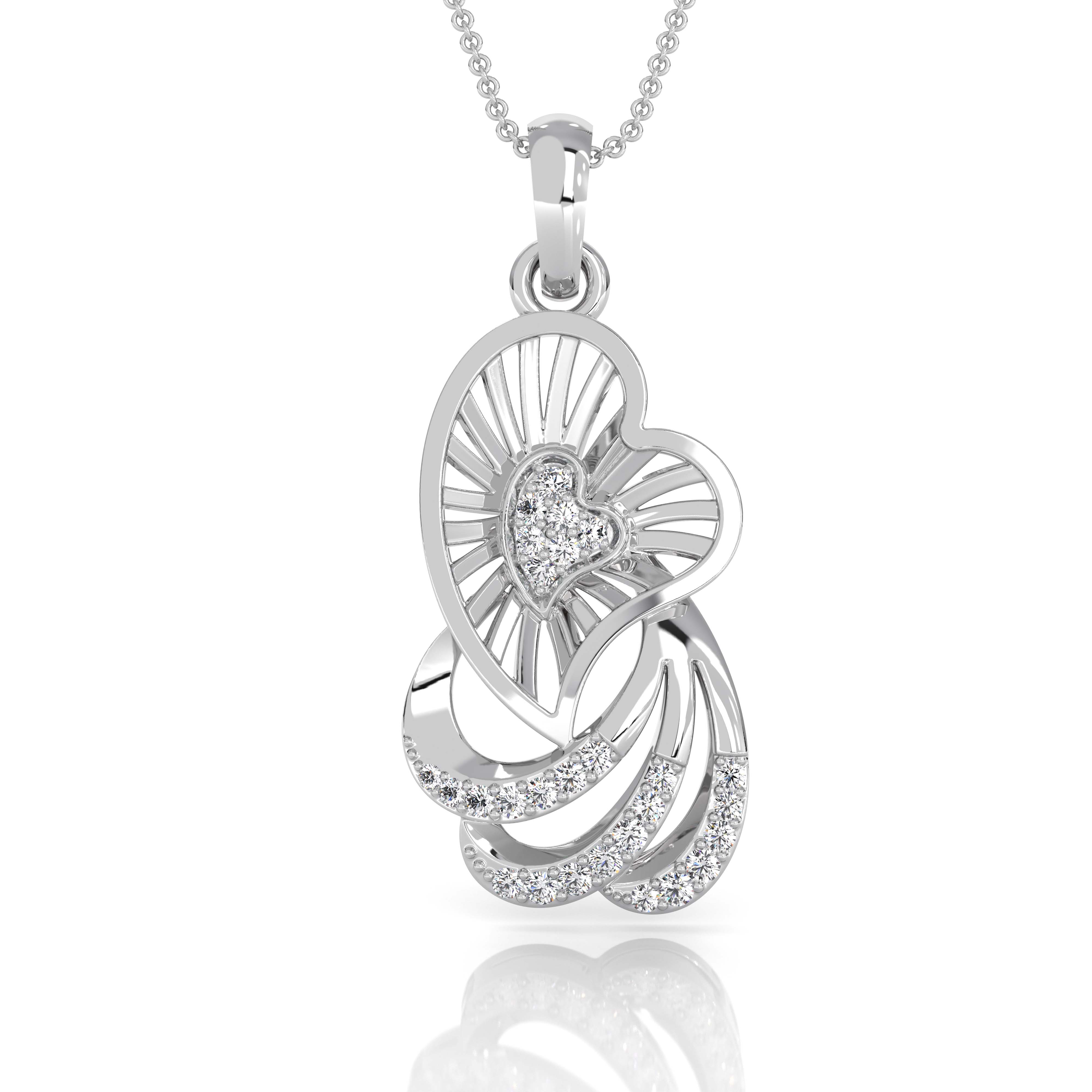 Beautifully crafted in solid 18k Gold White, this elegant heart-shaped love pendant showcases a graceful layered heart design accented with lab grown round diamonds for added brilliance. The pendant features a total of 27 diamonds with a combined weight of approximately , carefully set to enhance sparkle and visual depth. The polished gold finish highlights the romantic heart motif, making it a perfect symbol of love and affection. This pendant has an approximate gold weight of 2.55 grams and is ideal for everyday wear or as a meaningful gift for Valentine?s Day, anniversaries, birthdays, or special occasions. (0.11Ct. tw.)