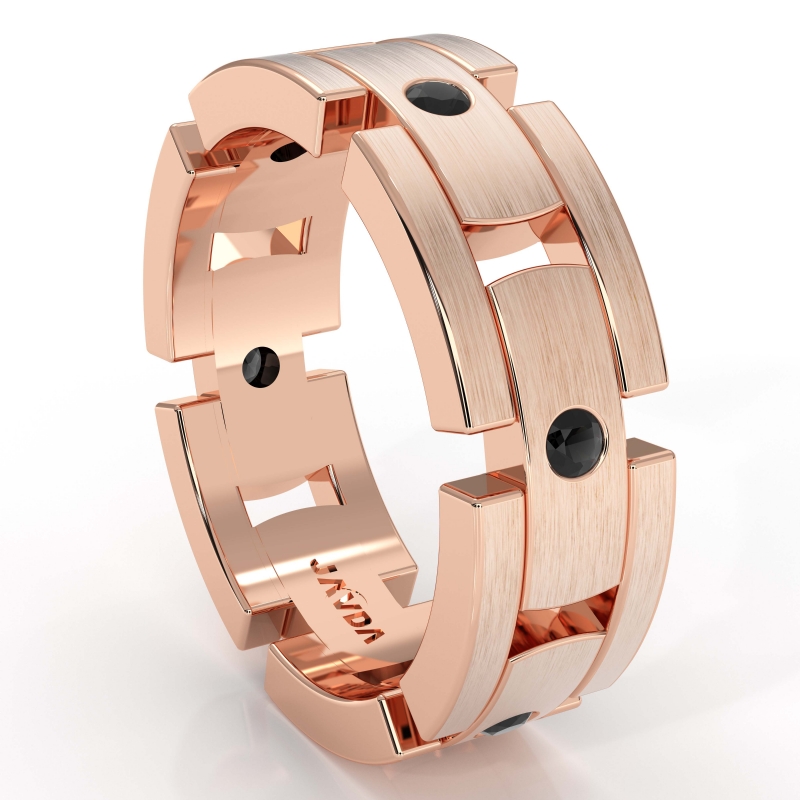 Round Black Diamond Men's Block Link Eternity Wedding 8.5mm Band made in 18k Rose Gold. (0.35Ct. tw.)