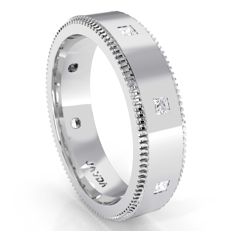 This polished finished diamond eternity men's wedding band made from solid 10k White Gold. Featuring princess cut total diamonds set in a bezel setting with beautiful edges.
