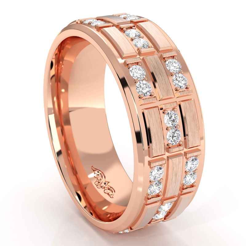 3 Row Matte Finish Diamond Eternity Men's Wedding Band 10k Rose Gold 0.80 Ct. (0.8Ct. tw.)