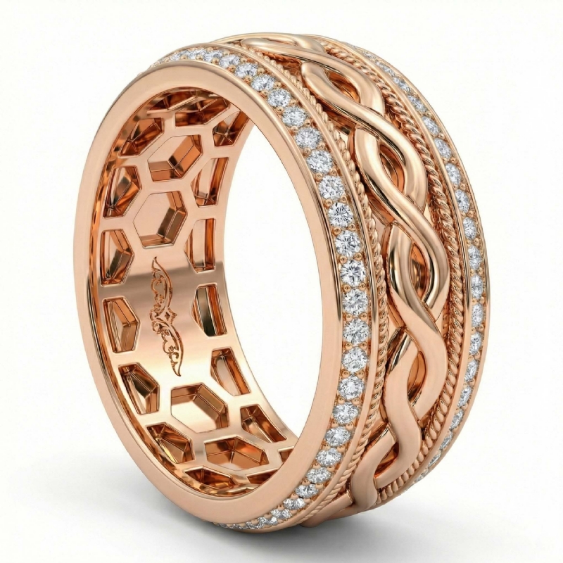 Infinity Pattern Diamond Eternity Men's Wedding Band 10k Rose Gold (0.9Ct. tw.)