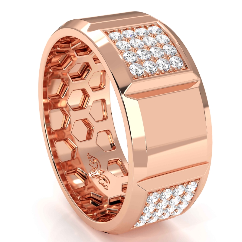 This handsome men's diamond eternity wedding band is sure to win his heart. Features 1.00 carat round diamonds in a micro pave setting and vertical cuts with beveled edges crafted in polished finished 10k Rose Gold. Available in 14k & 18k white gold, yellow gold, rose gold and platinum 950. (1Ct. tw.)