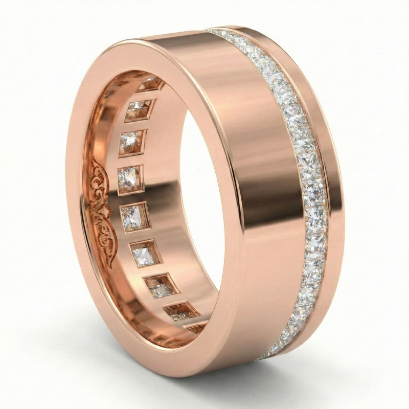 Offset Channel Princess Diamond Eternity Men's Wedding Band 14k W Gold 1.29 Ct (1.29Ct. tw.)