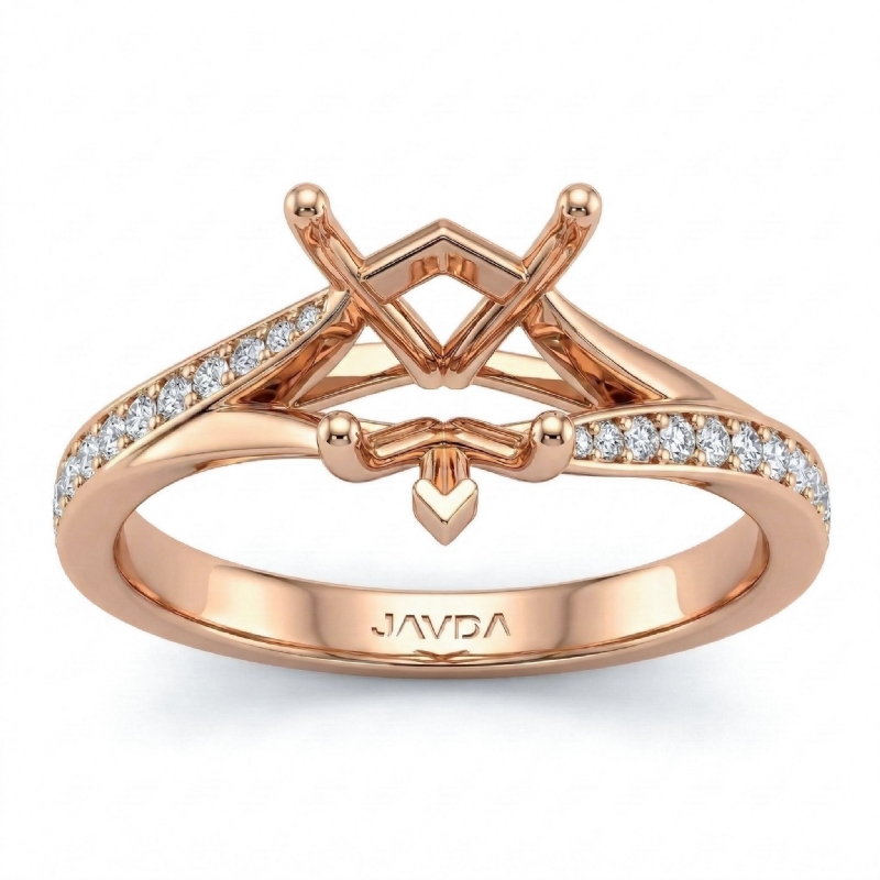 Heart Diamond Engagement Pave Set 18k Rose Gold Heart Semi Mount Ring (0.35Ct. tw.)