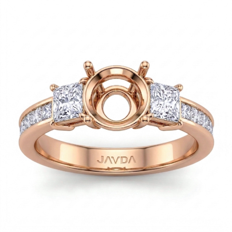 3Stone Diamond Engagement Ring 14k Rose Gold Princess Round Setting (1.1Ct. tw.)