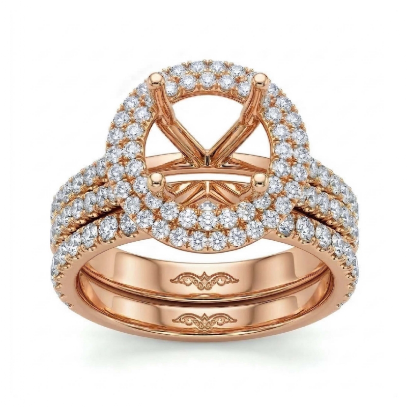 Diamond Halo Pave Setting Engagement Ring Round Bridal Set 18k Rose Gold (2.2Ct. tw.)