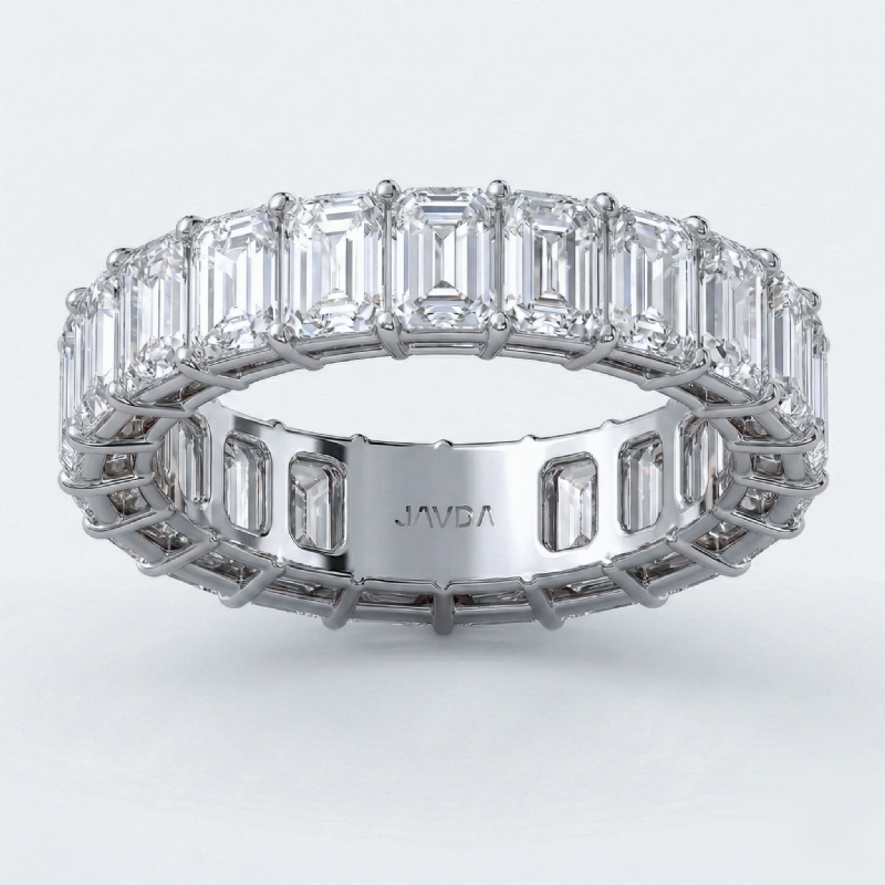 Gorgeous women's eternity emerald cut lab-grown diamond wedding band meticulously handcrafted in 14k Gold White. This wedding band showcases a carat emerald diamonds in shared prong setting IGI Certified ensuring its quality. This stunning accessory will elevate the appeal of any outfit, also available in 14k & 18k white gold, yellow gold, rose gold and platinum 950. If you don't find your desired jewelry, please don't hesitate to contact our designer to make your custom jewelry design. (6.2Ct. tw.)
