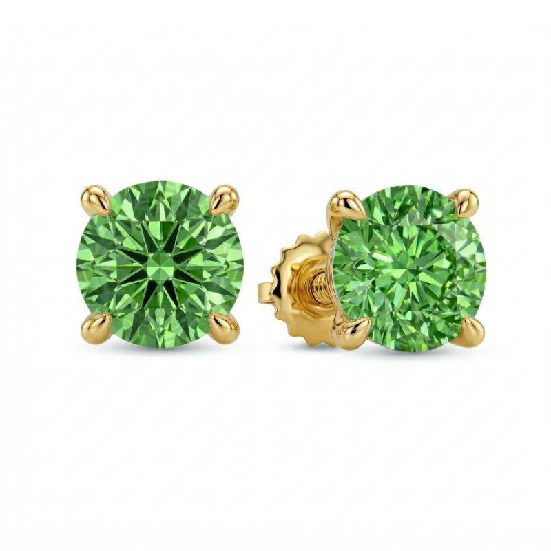 Round Lab grown Green Diamond Prong Stud Earring 14k Gold (3Ct. tw.)
