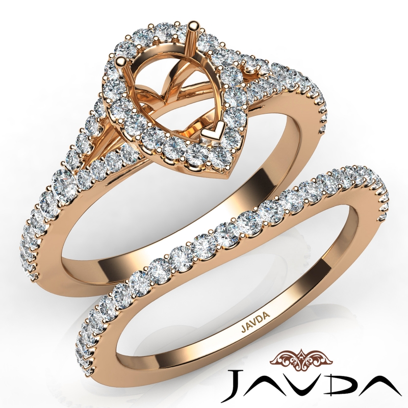 U Prong Diamond Engagement Ring Pear Semi Mount Bridal Set 18k Rose Gold (0.8Ct. tw.)
