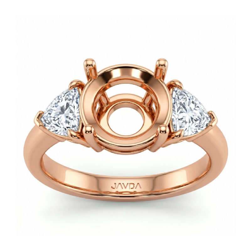 Three Stone Diamond Engagement Trillion Round Semi Mount Ring 18k Rose Gold (0.55Ct. tw.)