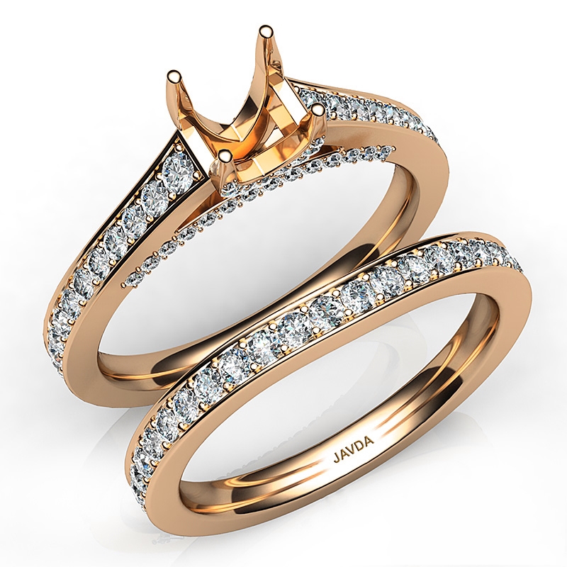 Cushion Cut Diamond Engagement Semi Mount Ring Bridal Set 18k Rose Gold (1.25Ct. tw.)