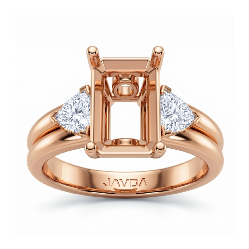 Three Stone Diamond Engagement Trillion Emerald Semi Mount Ring 18k Rose Gold (0.58Ct. tw.)