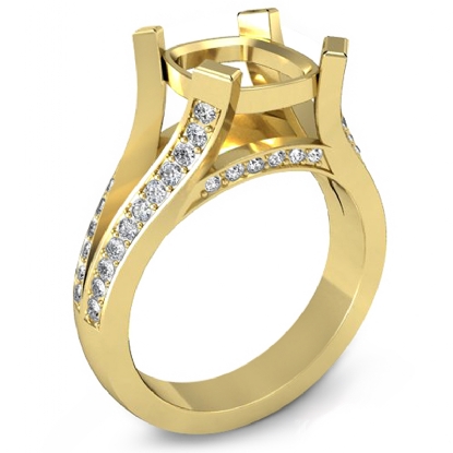 Celebrate lavishly with this diamond engagement ring made in 18k Gold Yellow. It showcases a cushion semi mount in prong, with pave set round diamonds gleaming along the shank. (0.45Ct. tw.)