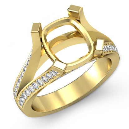 Cushion Diamond Engagement Split Shank Ring 18k Gold Semi Mount (0.45Ct. tw.)