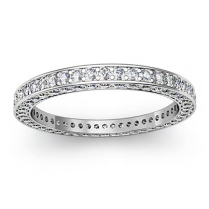 Round Diamond Pave Vintage Eternity Ring made in 18k Gold White. (1.58Ct. tw.)
