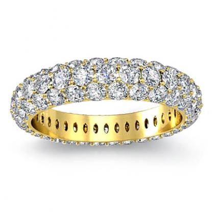 3 Row Round Pave Diamond Women Eternity Ring Band made in 14k Gold Yellow. (3Ct. tw.)