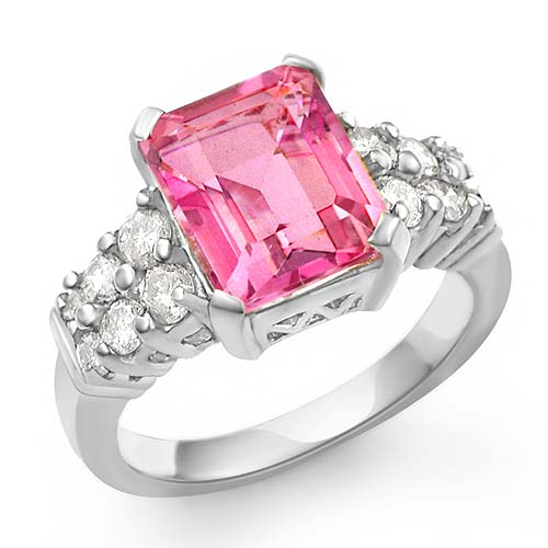 Emerald Pink Topaz Gemstone Diamond Ring 18k W Gold (5.25Ct. tw.)