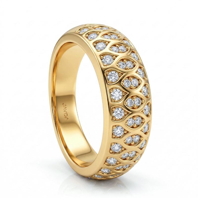 Round Diamond Antique Half Wedding Ring Band made in 14k Gold Yellow. (0.51Ct. tw.)