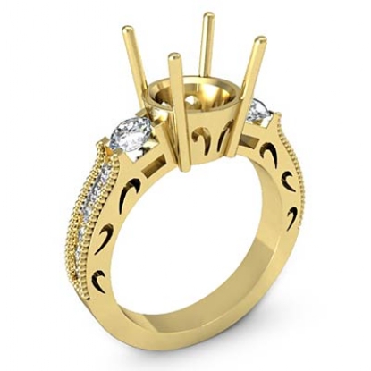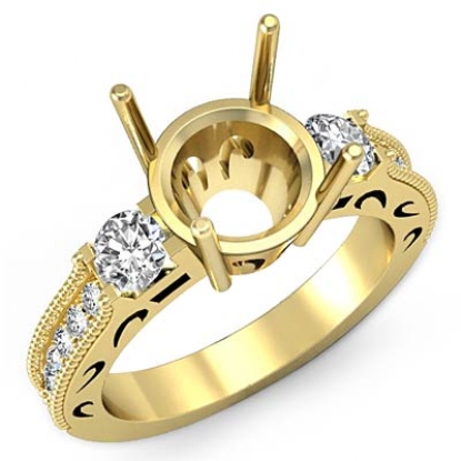 Round Diamond Vintage Engagement 3 Stone Ring Setting 18k Gold (0.65Ct. tw.)