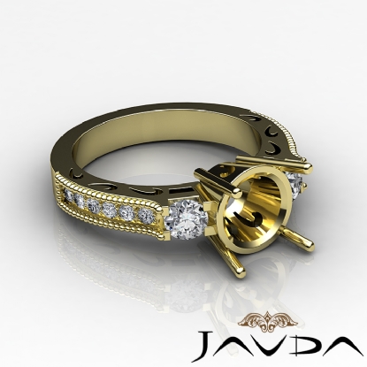 Fit for a princess! This semi mount diamond ring has round diamonds on the shank with milgrain on each side and round side stones in prong setting. This ring is made in 18k Gold Yellow and is a true beauty. (0.65Ct. tw.)