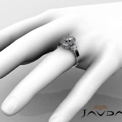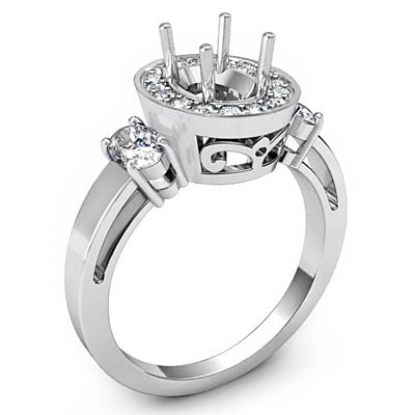 3 Stone Diamond Anniversary Round Oval Cut Setting Ring 18k W Gold Semi Mount (1.05Ct. tw.)
