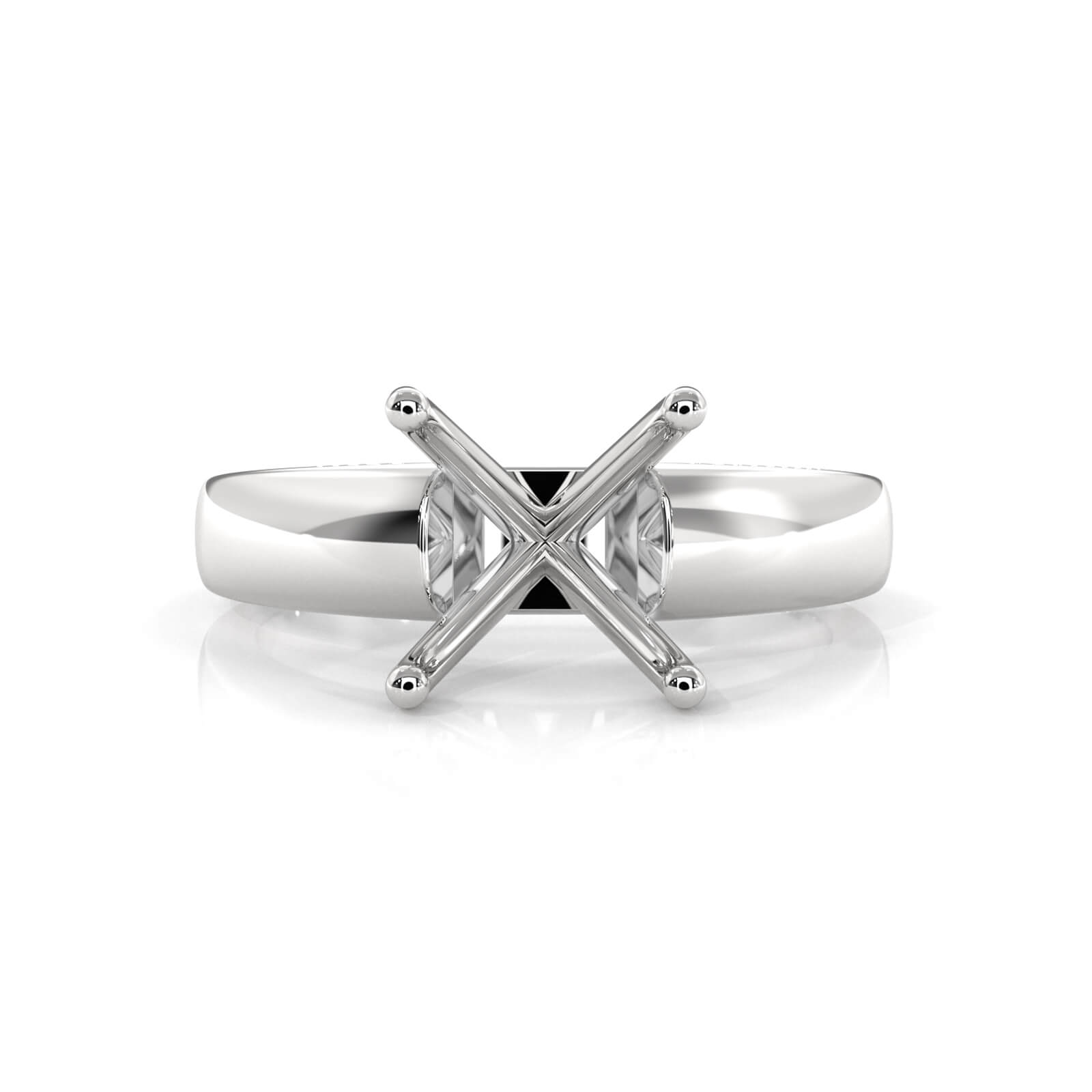 8 gram Diamond Classic Plain Traditional Solitaire Engagement Ring Semi Mount made in 18k Gold White. Can be made with Any Diamond Shape Prong and ring width is 5.5mm.