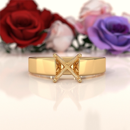7 gram Diamond flat edge cathedral setting Solitaire Classic Engagement Ring Semi Mount made in 18k Gold Yellow. Can be made with Any Diamond Shape Prong.