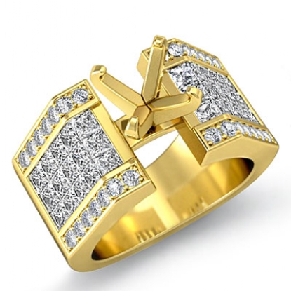 Princess Invisible Diamond Engagement Ring 18k Gold Semi Mount (2.62Ct. tw.)