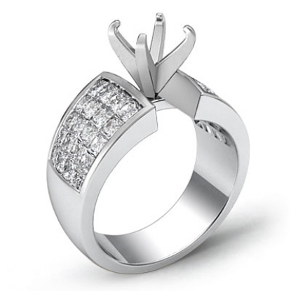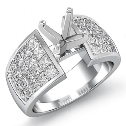 Diamond Engagement Women's Ring Princess Invisible Setting 18k W Gold Semi Mount (1.74Ct. tw.)