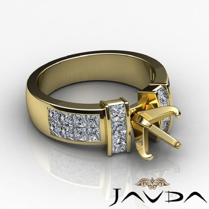 Forever timeless, this luxurious polished finish ring is made in 14k Gold Yellow. It features a round semi mount, with princess cut diamonds in invisible setting dazzling along the shank. (1.03Ct. tw.)